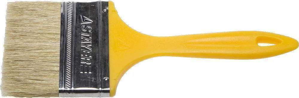 Натуральная щетина обеспечит оптимальное нанесение различных видов ЛКМ, щетина кисти надежно закреплена бандажом из никилированной стали, а наличие легкой пластмассовой рукоятки обеспечит комфортную работу