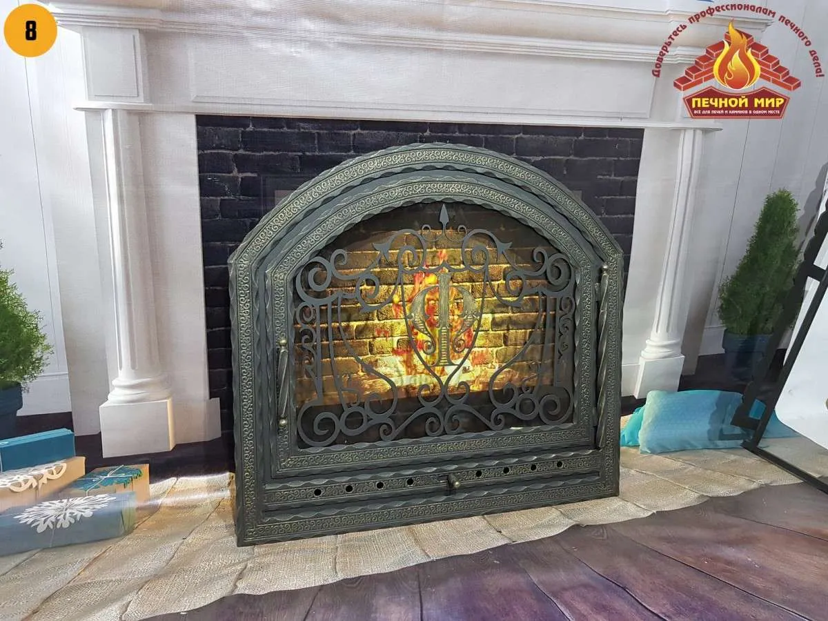 - В том же дизайне можем сделать панно, колосник, каминный набор и другие предметы.